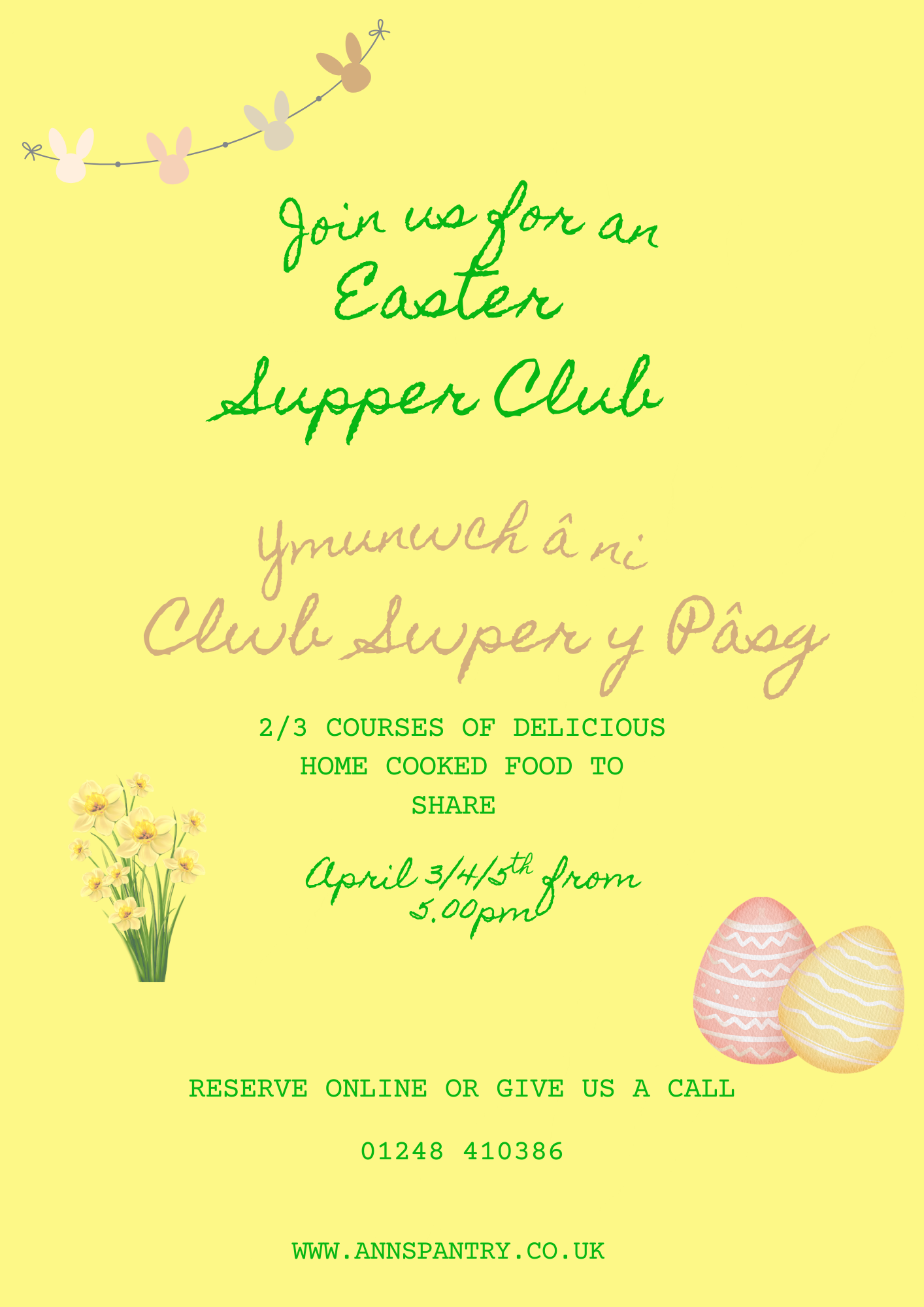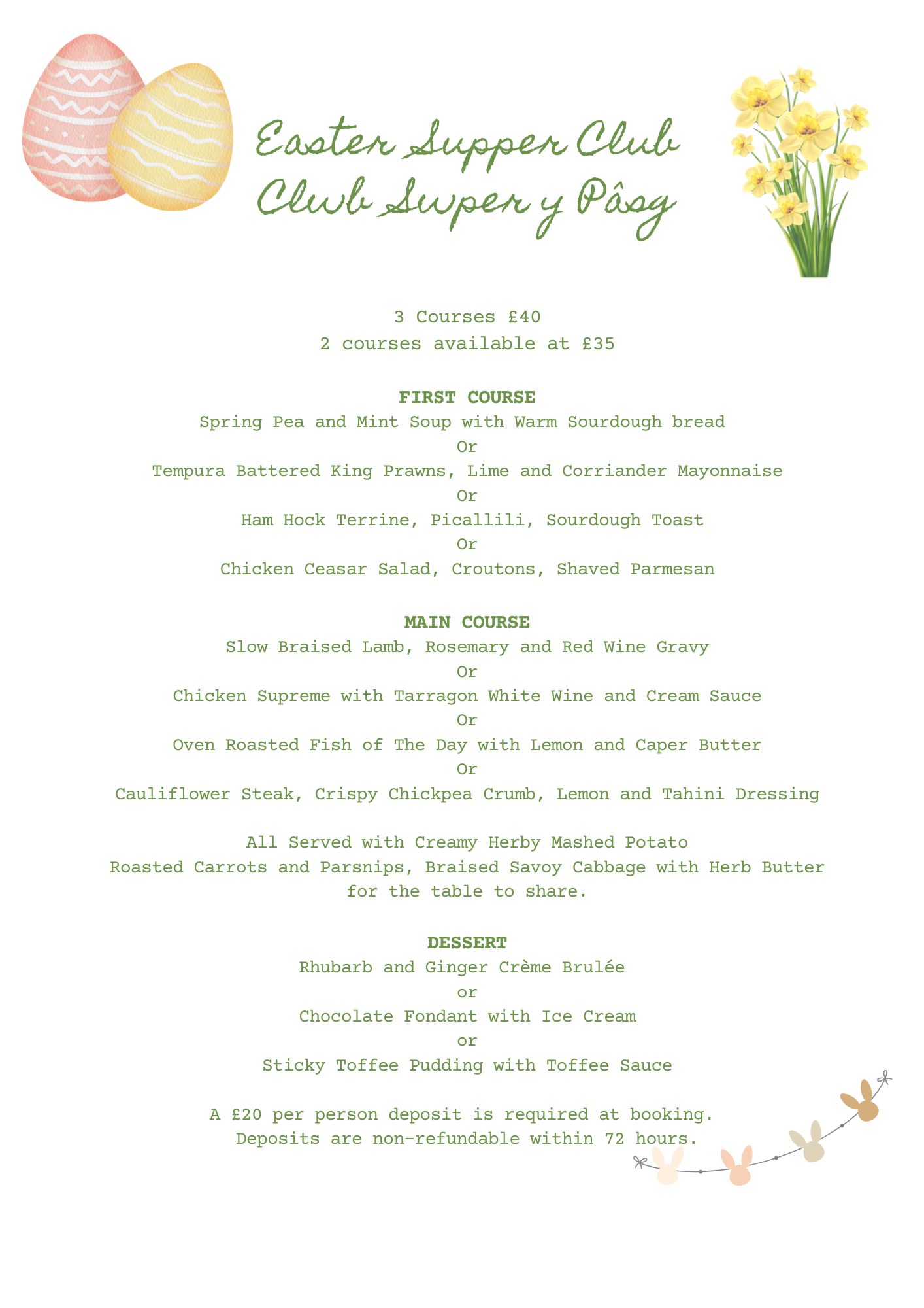 Our Easter Supper Club is all about taking time to slow down and enjoy a thoughtfully prepared menu, inspired by the best of spring. Expect fresh, vibrant flavours, comforting favourites, and a few special touches to mark the occasion.