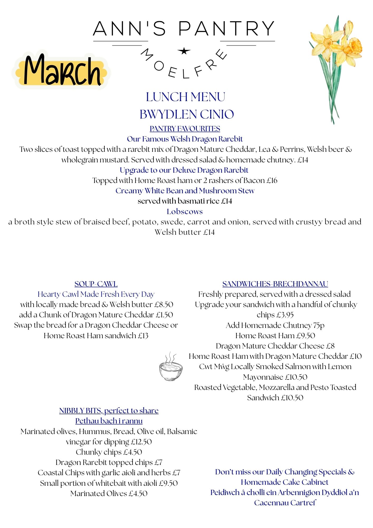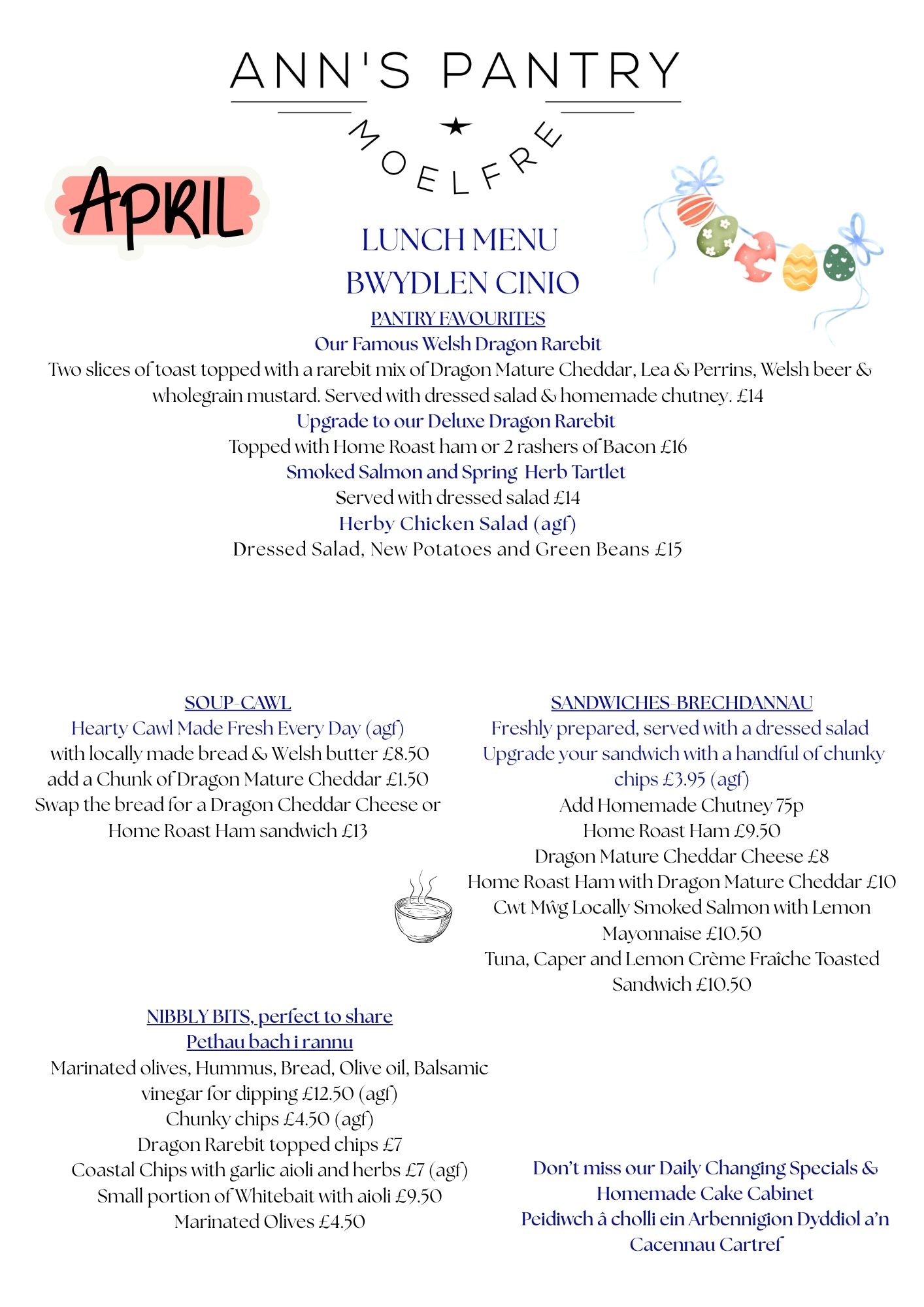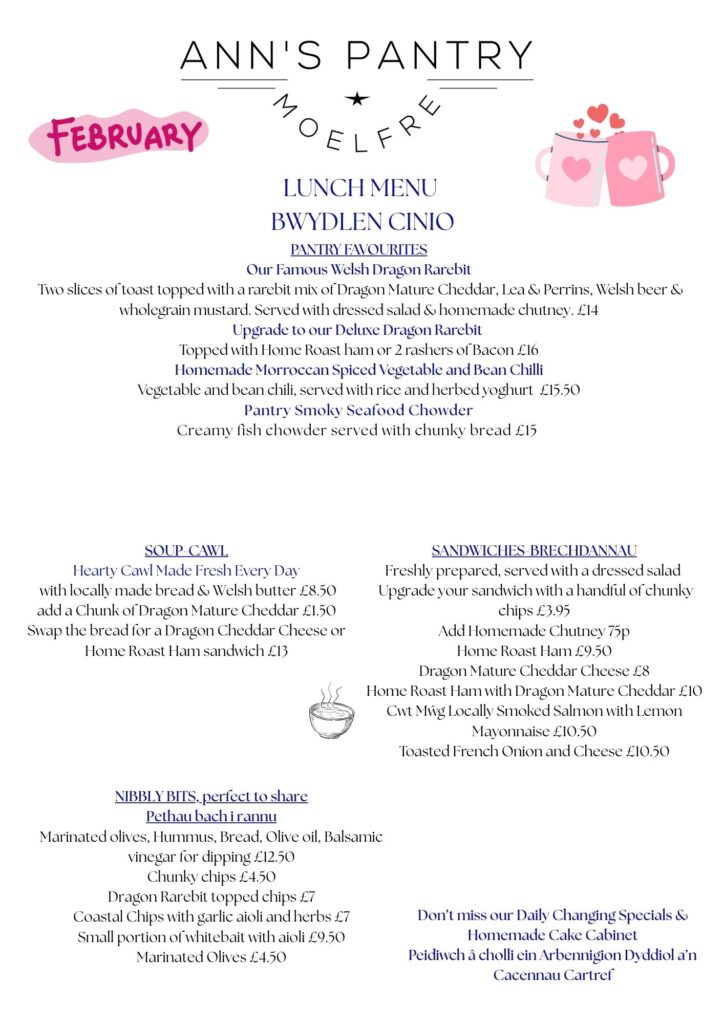 At Ann’s Pantry, we serve simple, home-cooked food made with care. Our menus change with the seasons and reflect what’s available locally whenever possible, alongside much-loved favourites that regulars return for time and again. From cakes and coffees to light lunches and afternoon teas, everything is prepared with warmth, generosity and attention to detail