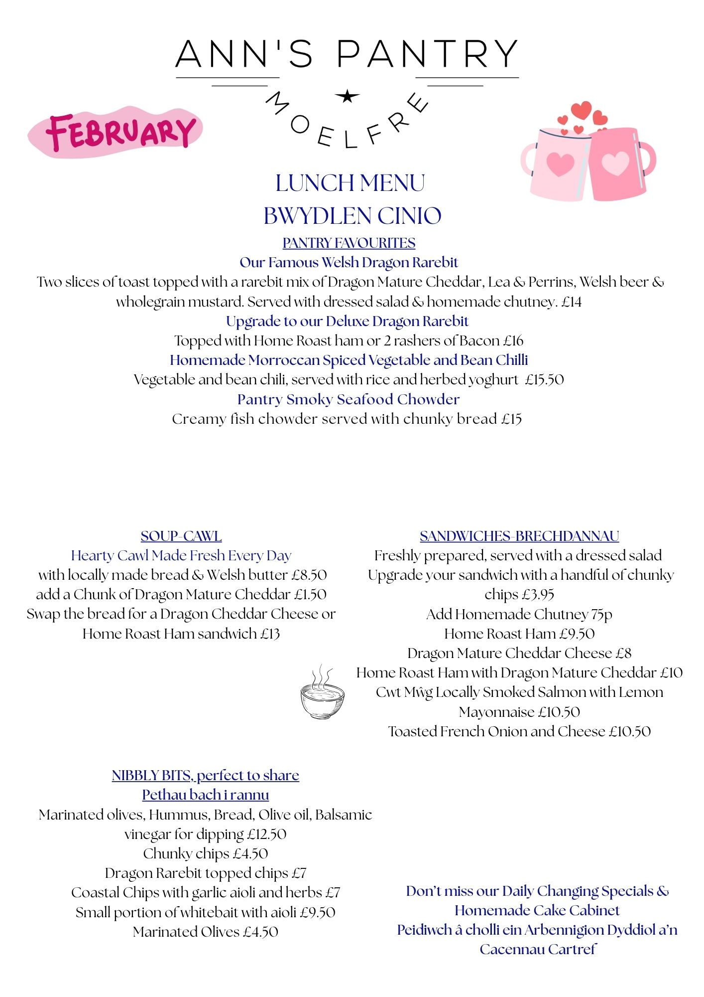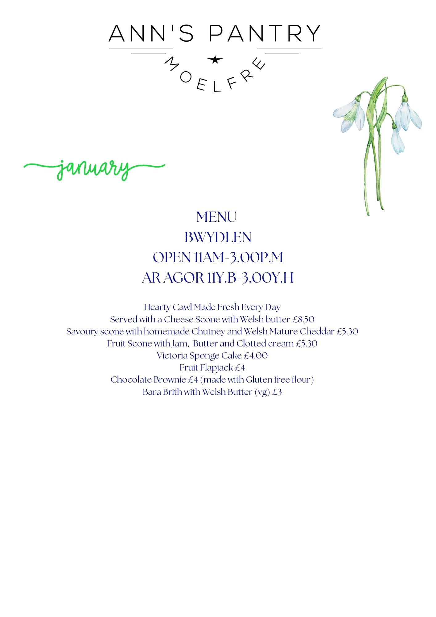 Our Opening Hours and Menus change on the 31st January.